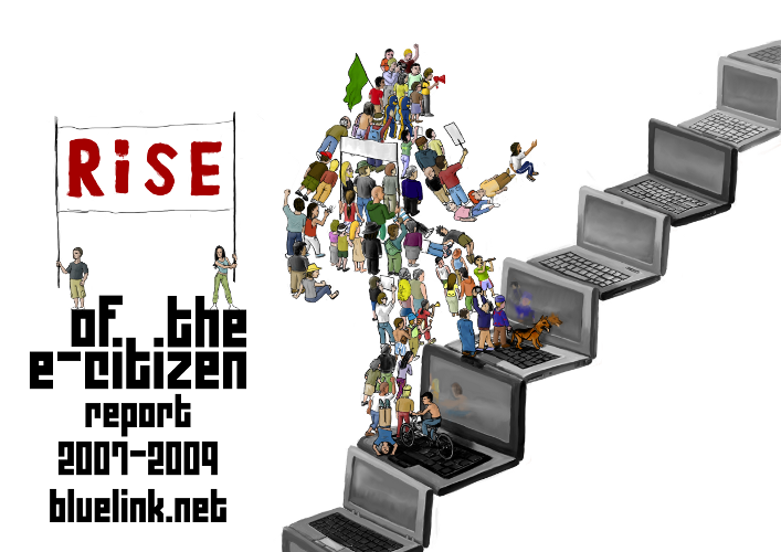 Front cover for a BlueLink report on using information technology in activism and advocacy.