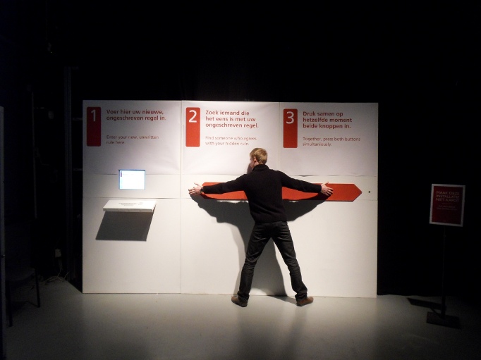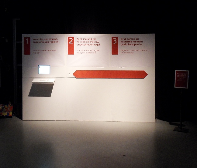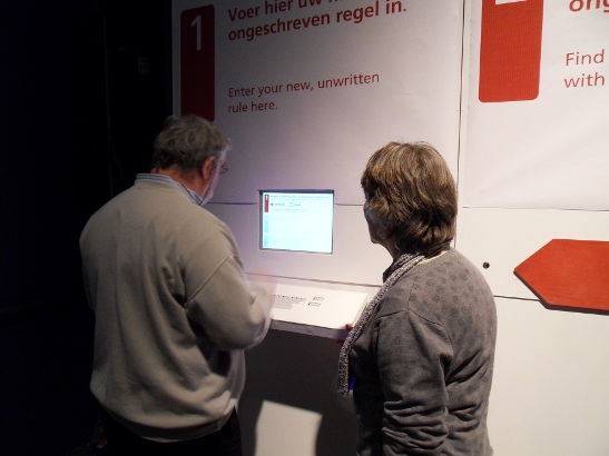 First, visitors were asked to come up with an unwritten rule that they supported, and enter it at a console.
