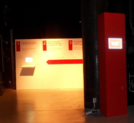 Afterwards the accepted rules were displayed on two screens on two red columns.
