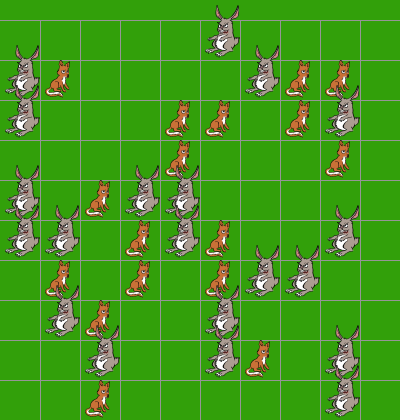 Foxes and Rabbits is a predator-prey simulation, based on Lotka-Volterra equations.