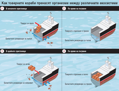 Infographic for Foreign Policy Bulgaria explaining how cargo ships carry foreign species into environments