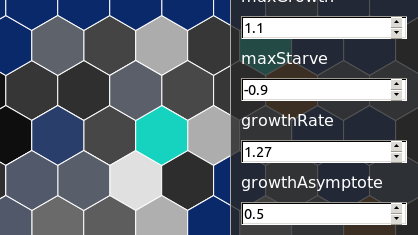 HexWorld is an artificial life simulation on a hexagonal grid.For more details and the code, check the project on github