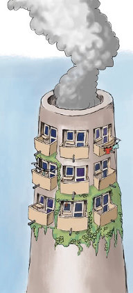 Illustration for Capital Weekly about turning industrial buildings into residences