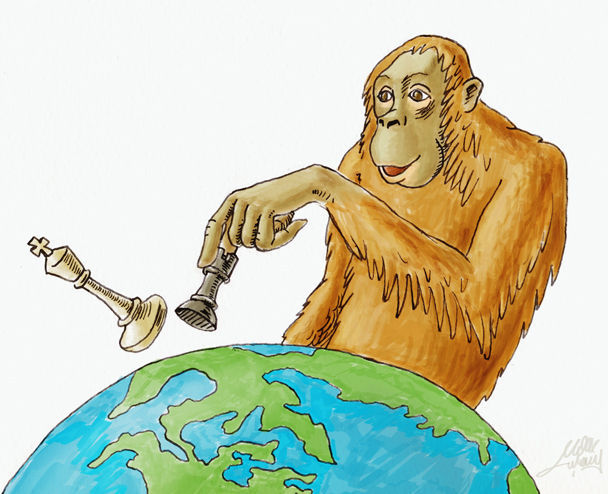 Illustration for Capital Weekly about new discoveries in monkey intelligence